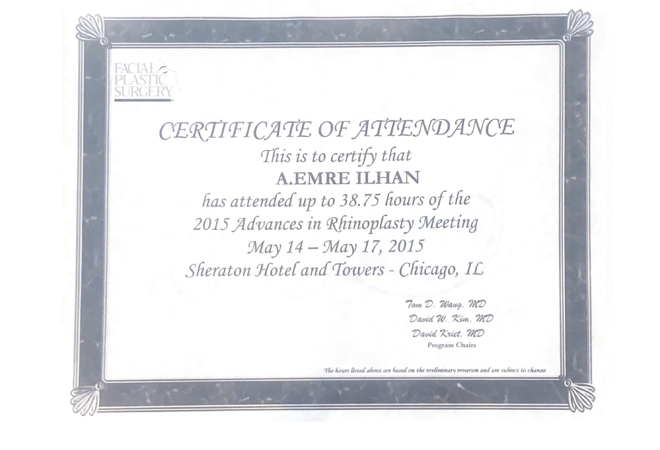 В течение последних 14 лет Оп. Др. А. Эмре Илхан сосредоточился исключительно на ринопластике и здоровье носа. Он добился высоких показателей успеха в ринопластике и ревизионной ринопластике для пациентов как со всей Турции, так и со всего мира, и стал пионером в разработке множества достижений в эстетике носа. Он известен исключительно высоким уровнем удовлетворенности пациентов, как в Турции, так и за рубежом.